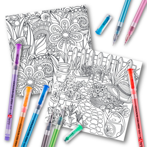 Придбати розмальовку антистрес з гелевими ручками SANTI ви можете в магазині Арткопілка.