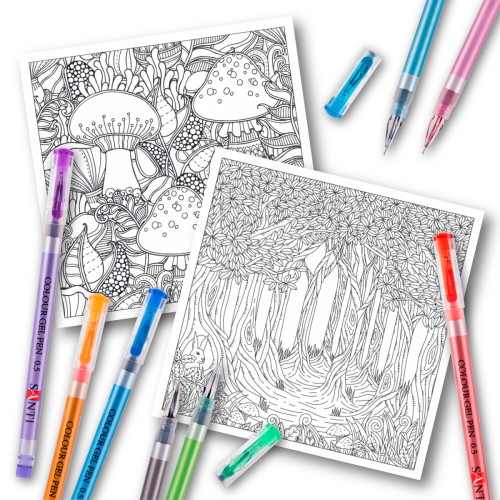 Придбати розмальовку антистрес з гелевими ручками SANTI ви можете в магазині Арткопілка.