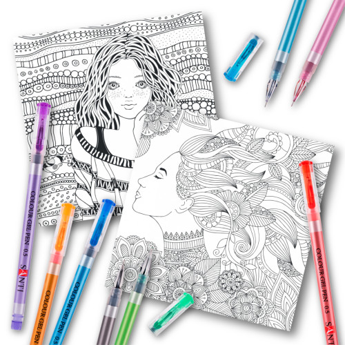 Мітки: Розмальовка-антистрес з гелевими ручками Чарівні дівчата, SANTI