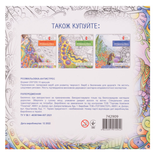 Придбати розмальовку антистрес SANTI ви можете в магазині Арткопілка.