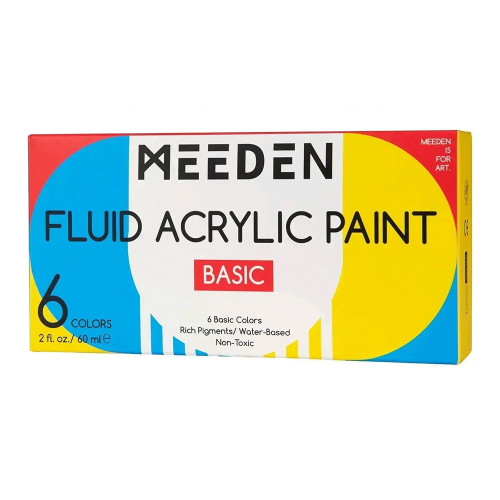 Мітки: Набір рідких акрилових фарб Fluid Basic 6x60 мл, MEEDEN