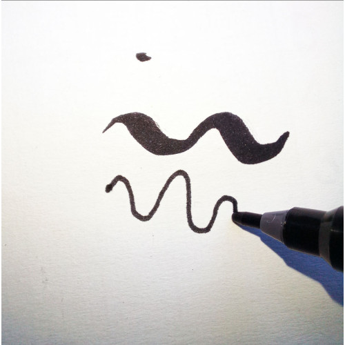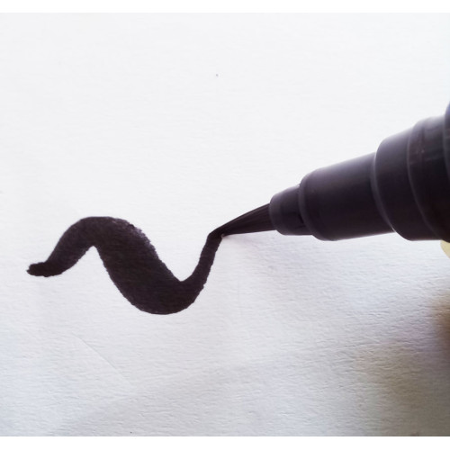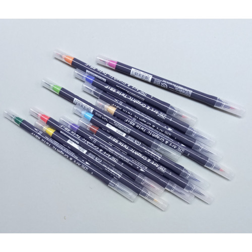 Кожен маркер двосторонній: з одного боку гнучке м’яке пензлеве перо (brush) високої якості, яке чудово імітує справжній пензель, дозволяючи варіювати товщину лінії від найтонших штрихів до широких мазків, з іншого — точне тонке перо (fine) для детального опрацювання, контурів і дрібних елементів. Водна основа чорнил забезпечує плавне змішування кольорів прямо на папері, створення м’яких градієнтів, акварельних розмивок та переходів без використання додаткової води.