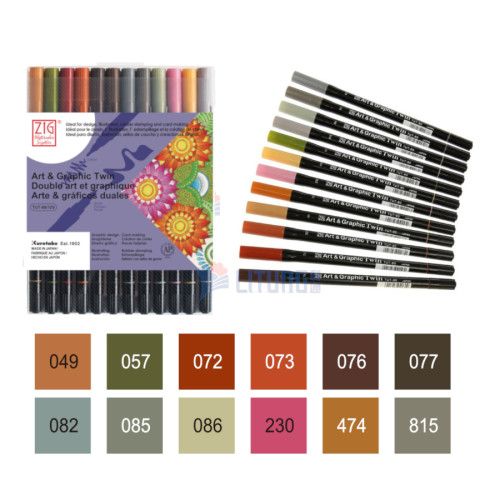 Купити набір акварельних маркерів матові тони ZIG ART & GRAPHIC TWIN, 12 шт на Арткопілка — оригінальна продукція Zig Kuretake за найкращими цінами з доставкою Києвом, Львовом, Одесою, Дніпром, Харковом та будь-яким містом України.