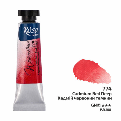 Фарба акварельна ROSA Gallery 774 Кадмій червоний темний, 10мл