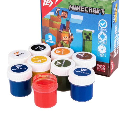 Фарби гуашеві YES Minecraft, 9 кольорів по 20 мл