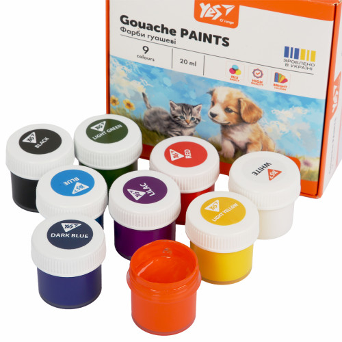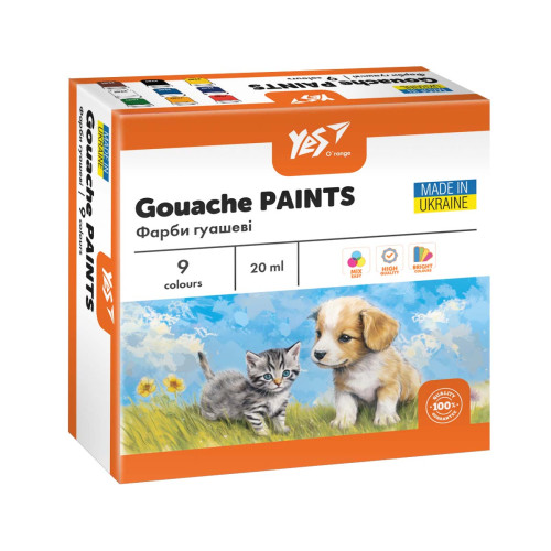 Фарби гуашеві YES O’range Line, 9 кольорів по 20 мл — безпечний і натхненний набір для творчості дітей. Замовляйте гуаш YES O’range Line у Арткопілка та подаруйте дитині можливість створювати свій кольоровий світ!