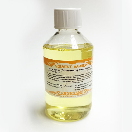 Розчинник «Трійник» Renesans — незамінний помічник у багатошаровому олійному живописі. Дозволяє створювати більш міцні, блискучі та насичені роботи. Підходить для професіоналів та любителів.
