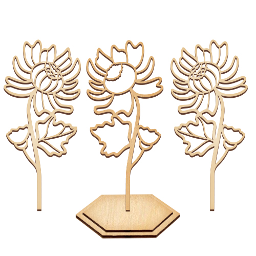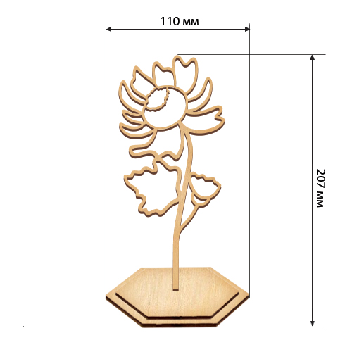 - Заготовка з МДФ: об’ємна фігура хризантеми висотою 20,7 см + підставка.