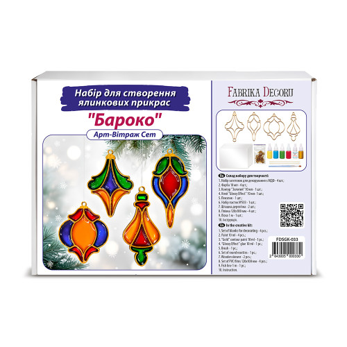 Набор «Барокко» из серии Арт Витраж от Fabrika Decoru — это изысканный комплект для создания роскошных рождественских подвесок в технике витражной росписи по номерам. Элегантные орнаменты в стиле барокко, наполненные глубокими оттенками рубина, сапфира, изумруда и благородного золота, превращаются в сияющие праздничные украшения с настоящим стеклянным эффектом.