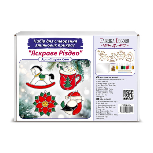 Набор «Яркое Рождество» от Fabrika Decoru — это взрыв праздничного настроения в технике витражной росписи по номерам. Четыре милые и яркие фигурки — лошадка, кружка с какао, пуансеттия и птичка в шапочке — оживают под прозрачными красками Деко Гласс, создавая настоящий эффект цветного стекла. Классическая рождественская палитра красного, зелёного, белого и золотого наполняет дом теплом, радостью и атмосферой настоящего праздника.
