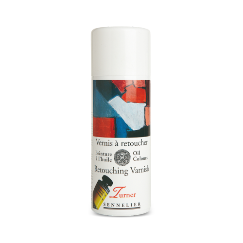 Професійний ретушувальний лак в аерозолі Sennelier Turner Vernis Retouch 400 мл — спеціальний тимчасовий лак для олійного та акрилового живопису. Використовується для відновлення блиску та насиченості кольору на ділянках, де фарба втратила однорідність через висихання, а також для захисту роботи до повного висихання.