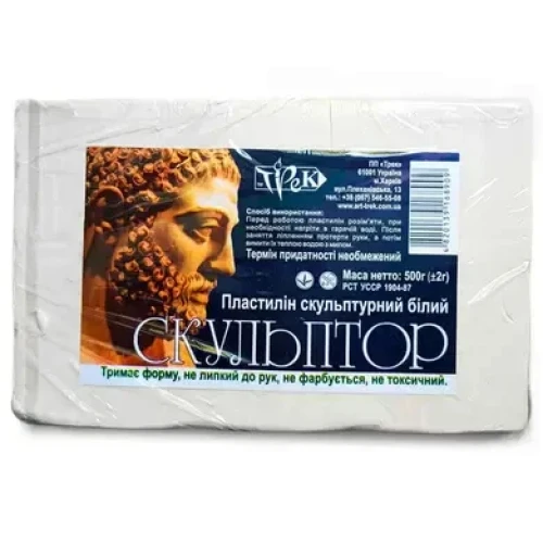 Пластилин скульптурний «Скульптор» Білий 0,5 кг — професійний матеріал на основі восковидної маси, наповнювачів і високоякісних пігментів, ідеально підходящий для створення скульптур, барельєфів, мініатюр і будь-яких робіт, де потрібна найтонша проробка форм і чистий білий колір. Чистий білий відтінок особливо цінується при подальшому фарбуванні, гіпсуванні або створенні світлих, яскравих композицій.