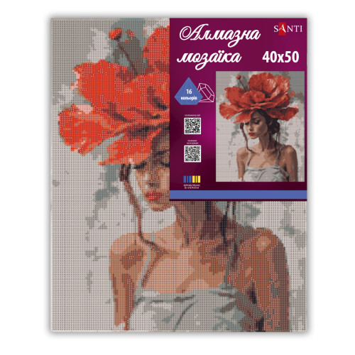 Мітки: Алмазна мозаїка на підрамнику SANTI Дівчина з червоною квіткою 40x50 см
