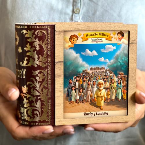 Набір пазлів «Вихід з Єгипту» (Puzzle Bible) — сюжетний дерев’яний пазл із серії KeyStory / Puzzle Bible. Ілюстрація передає ключовий момент біблійної історії — вихід народу Ізраїлю з Єгипту під проводом Мойсея. Набір допомагає дітям познайомитися з однією з найважливіших історій Старого Завіту, обговорюючи теми свободи, віри та Божого чуда.