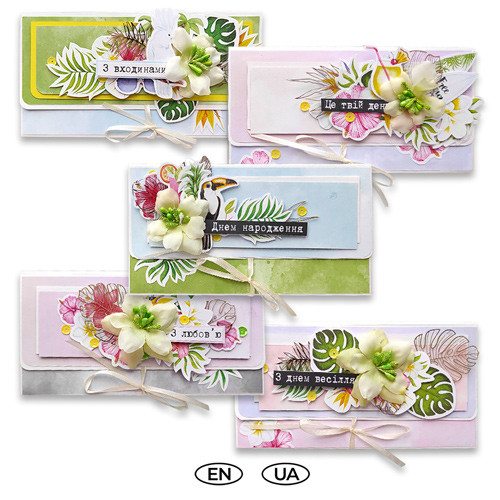 Набір для створення 5-ти вітальних конвертів Wild Tropics, 10 см х 19 см