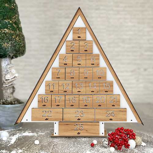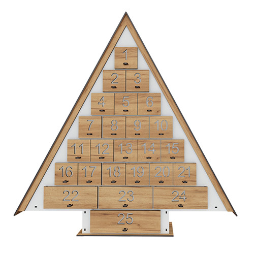 Створіть магію очікування свята вдома: класичний адвент-календар «Ялинка» з висувними шухлядками та вирізаними цифрами подарує щоденні приємні відкриття. Продуманий дизайн і акуратне виконання роблять його стильним декором і сімейною традицією.