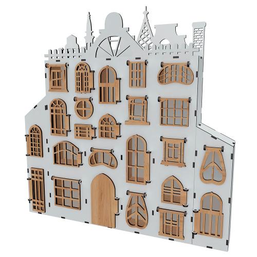 Набір-конструктор адвент-календар Веселий замок на 24 осередки №417, Дерево, 30x40x5 см (модель для складання)