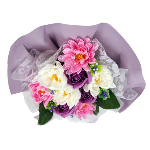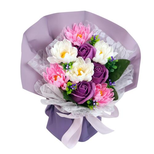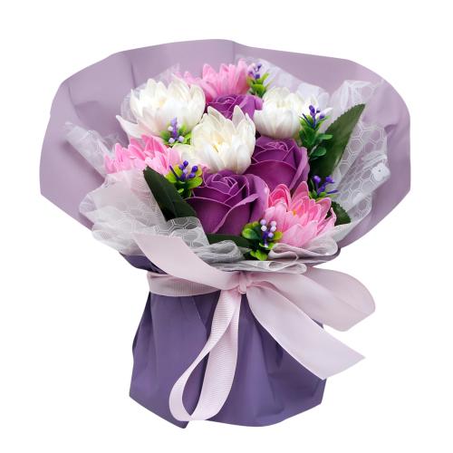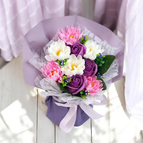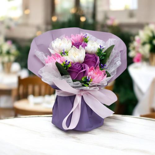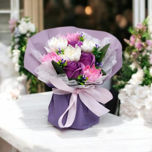 Усі квіти виготовлені з гіпоалергенної мильної піни, завдяки чому букет не в’яне, не осипається і не потребує догляду. Він зберігає насиченість відтінків і свіжий вигляд до 5 років, залишаючись універсальним рішенням для подарунка чи декору.