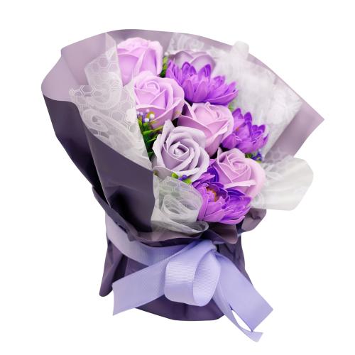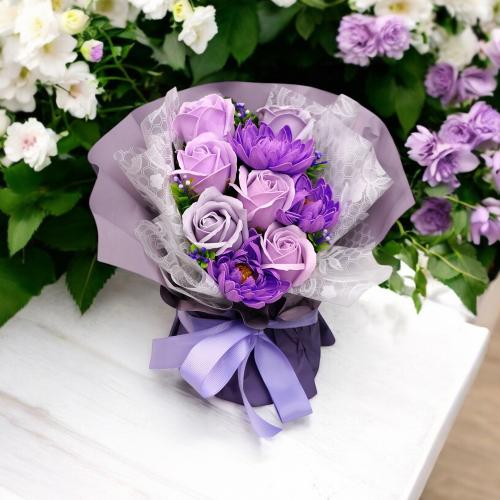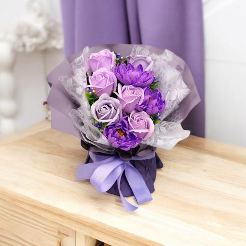 «Ліловий Шик» від Fine Flora — це вишукане поєднання сиреневих і лавандових відтінків, яке наповнює простір спокоєм та елегантністю. Пишні троянди й хризантеми з мильної піни виглядають як живі, не в’януть і не потребують догляду, зберігаючи красу протягом багатьох років.