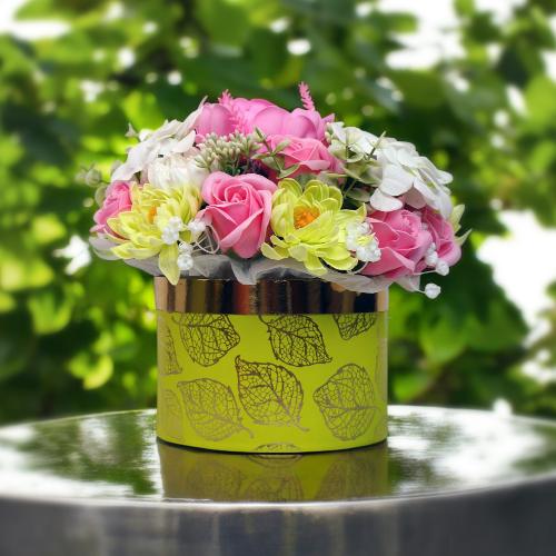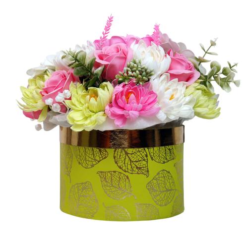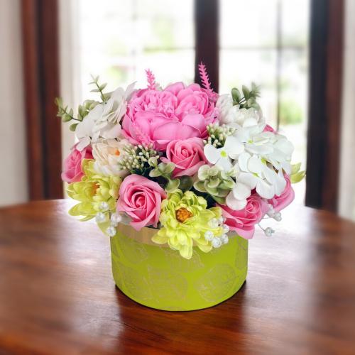 Коробочка-сюрприз Літня Феєрія з квітами з мильної пінки, 8 троянд, 11 хризантем, 2 гортензії, 1 півонія