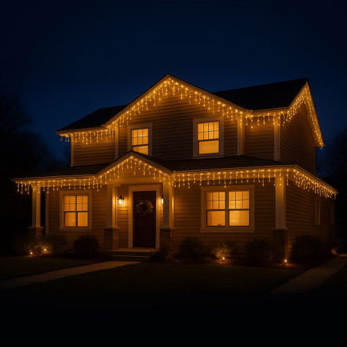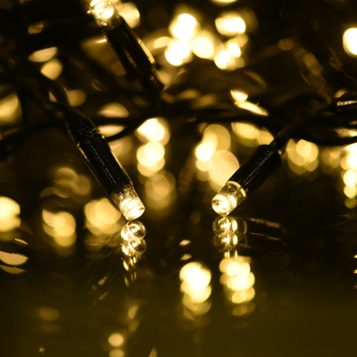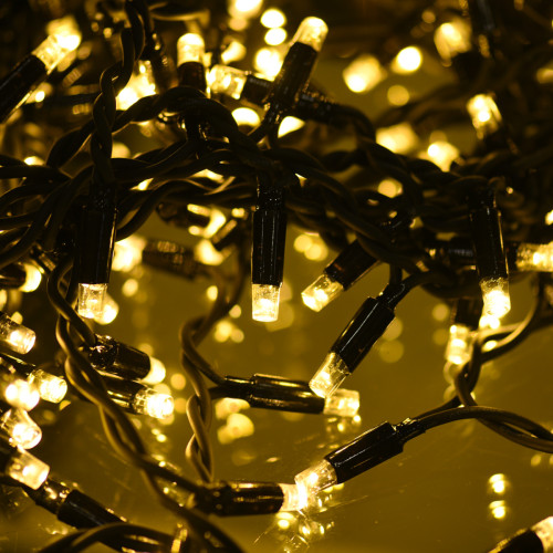 Електрогірлянда бахрома вулична використовується для вуличного декорування. Колір лампочок, що світяться - теплий білий; колір дроту - чорний. Кількість лампочок: 150 шт. Ступінь захисту електрогірлянди IP 65. Довжина проводу: 5,5 м. Склад: каучук, електричний провід. Джерело живлення: від мережі (220-240 В, 50-60 Гц, 6 Вт).