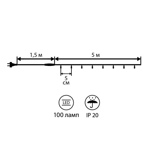 Мітки: Гірлянда світлодіодна Yes! Fun Christmas time, 100 ламп, блакитна, 5 м, 8 режимів миготіння
