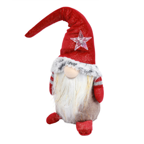 Новорічна м‘яка іграшка Novogod‘ko Гном Хлопчик, червона паєтка, 29см, LED ніс