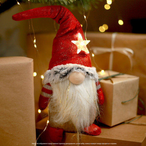 Мітки: Новорічна м'яка іграшка Novogodko Гном у червоному, 37 см, LED зірка