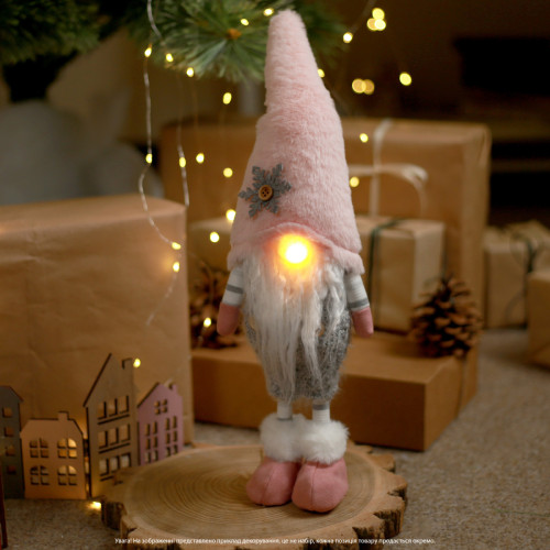 Мітки: Новорічна м'яка іграшка Novogodko Гном у рожевому ковпаку, 45 см, LED ніс