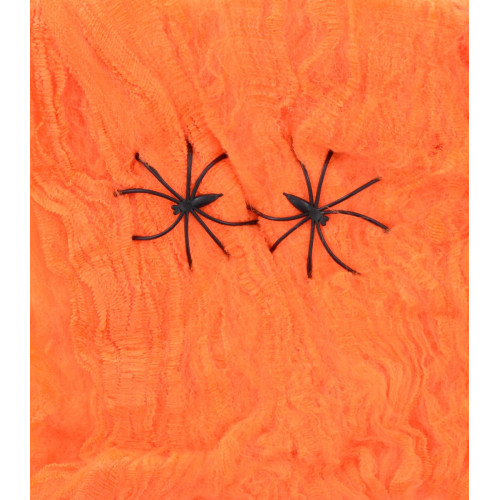 Помаранчева павутина виготовлена з якісного поліестеру, легко розтягується та утворює тонку напівпрозору текстуру. У комплекті є два декоративні павучки, які легко кріпляться лапками на павутині, створюючи ефект живої сцени. Декор додає оселі загадковості та веселого настрою.