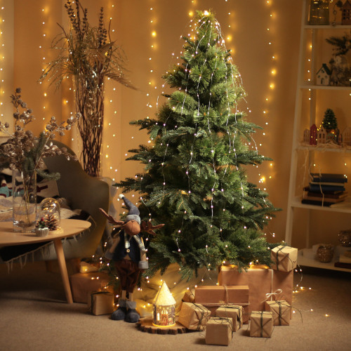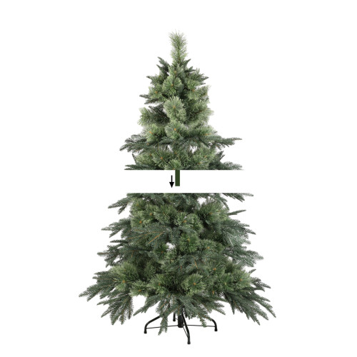 Хвоя виготовлена з ПВХ-плівки шириною 10 см, що надає гілкам об’єму та природного вигляду. Міцний металевий стовбур складається з двох частин і армований дротом для додаткової стійкості. Зручна підставка у вигляді металевої хрестовини з болтами забезпечує надійну фіксацію дерева. Збірка проста та займає мінімум часу, дозволяючи швидко створити святкову атмосферу.