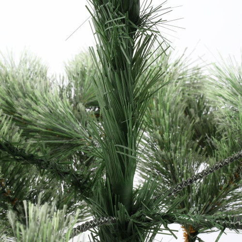 Штучна сосна подібна натуральному дереву, що росте в живій природі. Всі матеріали екологічно чисті, мають протипожежні властивості. Великим плюсом штучної сосни є її довговічність, а складання конструкції не забере багато часу. Красиве і пишне новорічне дерево буде щорічно наповнювати будинок радістю і благополуччям у різдвяний період. Матеріал: ПВХ плівка шириною 12 см; метал; дріт. Висота: 150 см. Діаметр нижнього ряду: 96 см. Система складається з двох частин. Підставка сосни — це металева хрестовина з болтами, що закріплюють стовбур. Габарити: 1,50 м.