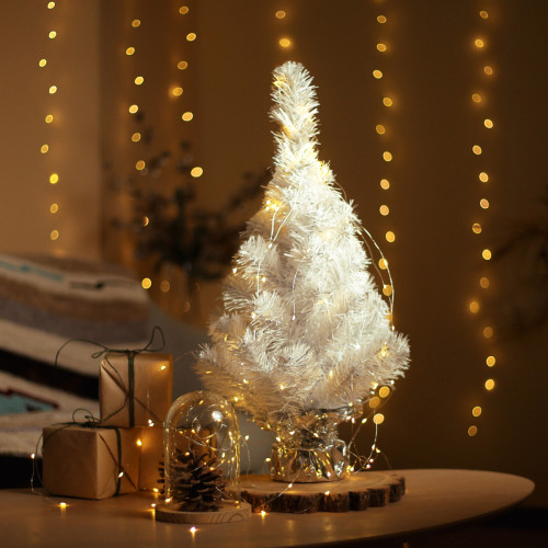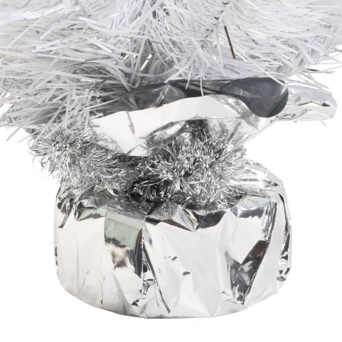 Штучна маленька біла ялина – чудовий декор для приміщення в період новорічних свят, який можна використовувати, прикрашаючи безліч поверхонь у будинку, офісі, торгових центрах. Поставте таку ялинку на столі, полиці, тумбочці, на прилавку магазину, у прикасовій зоні – і святковий настрій оточуючим буде гарантовано. Компактність та якісне виконання цієї прикраси – це і є його головні переваги. Матеріал: плівка ПВХ шириною 8,5 см; дріт; дерев'яний пеньок, обтягнутий фольгою. Висота: 60 см. Діаметр нижнього ряду: 43 см. Габарити: 0,60м.
