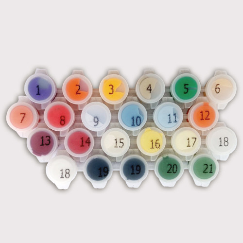 - Водорозчинні акрилові фарби, кількість кольорів варіюється від 15 до 40.