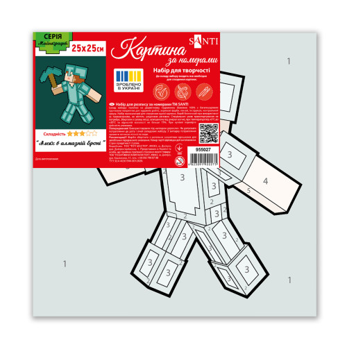 Мітки: Картина за номерами SANTI Майнкрафт Алекс у діамантовій броні 25x25см кольорове полотно