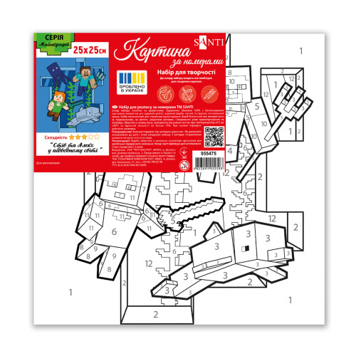 Картина за номерами SANTI “Minecraft” — це поєднання гри, навчання і натхнення. Дитина створює власний витвір мистецтва та прикрашає ним свою кімнату!