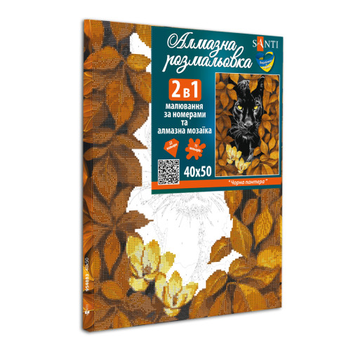 Мітки: Картина за номерами з алмазною мозаїкою SANTI Чорна пантера, 40x50 см