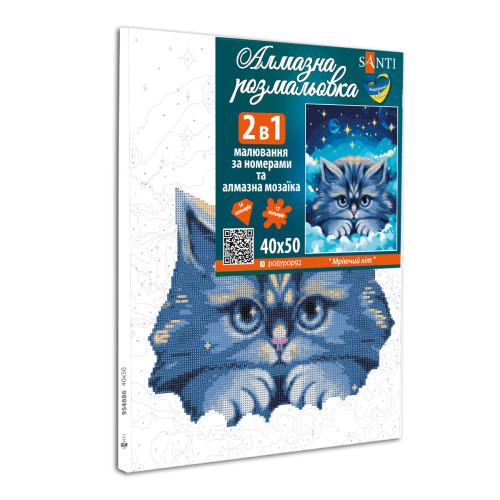 Мітки: Картина за номерами з алмазною мозаїкою SANTI Мрійливий кіт, 40x50 см