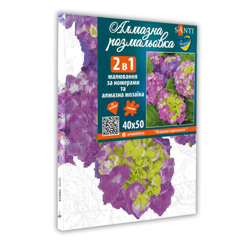 Мітки: Картина за номерами з алмазною мозаїкою SANTI Яскрава гортензія, 40x50 см