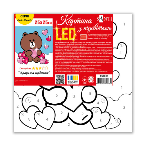 Мітки: Картина за номерами з LED підсвіткою SANTI Лайн Френдс. Браун і сердечко 25х25 см