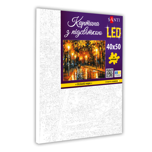 Мітки: Картина за номерами з LED підсвіткою SANTI Осінній парк 40x50см