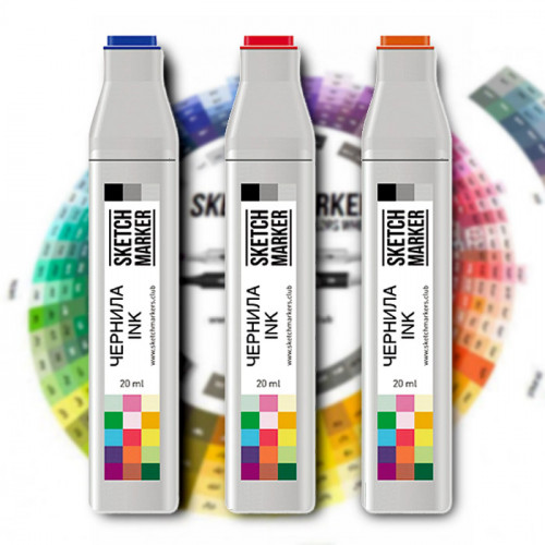 Чорнило на спиртовій основі у маркерах лінійки SKETCHMARKER виготовлені в Японії за спеціальною технологією та відрізняються високою якістю. У маркерах SKETCHMARKER використовується оригінальна SKETCHMARKER формула чорнила, яка дозволяє краще блендити відтінки. Чорнила відмінно поєднуються між собою, утворюючи плавні переходи, нові відтінки, створюючи воістину масштабні можливості для передачі глибини та тону кольорів. Чорнила SKETCHMARKER на спиртовій основі є перманентними та швидковисихаючими. Вони сумісні із будь-якими іншими брендами спиртових маркерів. Чорнило розлито в пляшечки 22 мл. При правильному застосуванні вистачає на 12-13 заправок.
