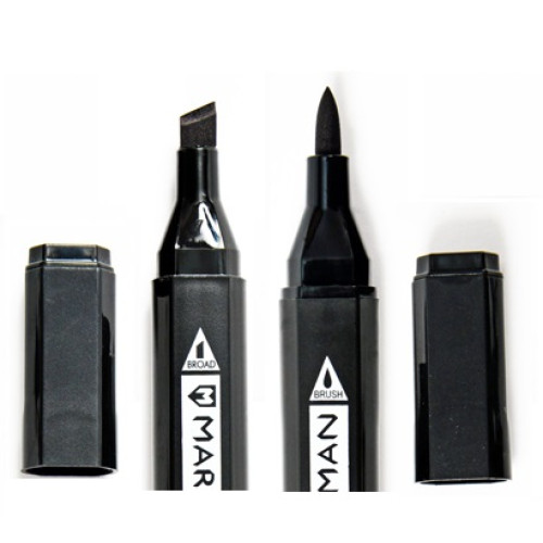 Двосторонні маркери на спиртовій основі TM MARKERMAN - це універсальний інструмент, який знайде своє застосування як у професійних дизайнерів, так і у любителів скетчингу-початківців. З двома різними наконечниками — плоским зрізом для широких ліній 5 мм (долото) та круглим пензликом для точних деталей, ці маркери забезпечують гнучкість у творчості та різноманітність художніх ефектів.