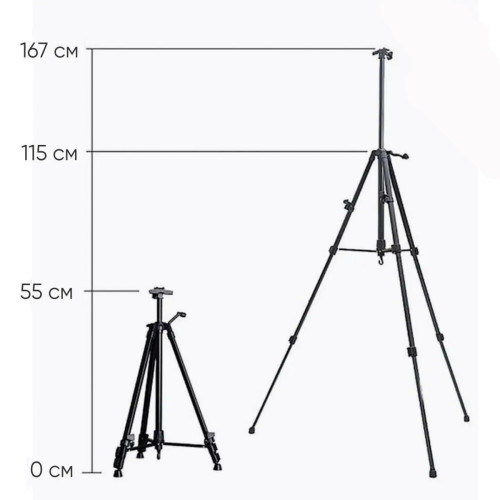 Телескопічні ніжки дозволяють регулювати висоту конструкції до 155 см, забезпечуючи комфортну роботу художникам будь-якого зросту. У складеному вигляді мольберт можна використовувати як настільний, що особливо зручно для занять із дітьми або роботи за столом.
