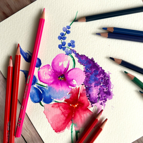 Кожен олівець поєднує властивості звичайного кольорового олівця та акварелі: малюйте сухим способом для чітких ліній і текстур, а потім додайте воду пензлем — і отримайте м’які переходи, градієнти та справжню акварельну легкість. Грифель м’який, пігмент яскравий і стійкий, легко змішується та нашаровується без розводів.