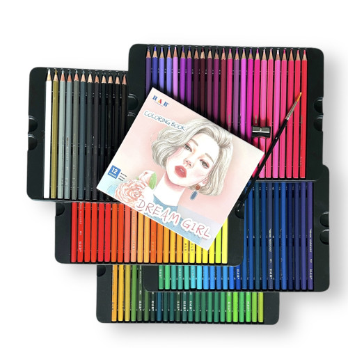 Мітки: Великий набір водорозчинних кольорових олівців 120 кольорів HB, металевий пенал