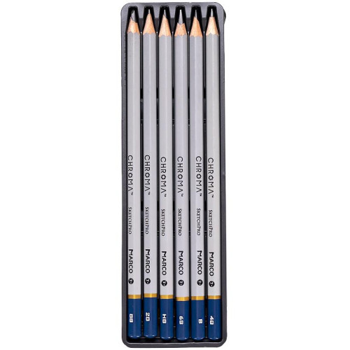 Купити Набір графітних олівців Marco Chroma 6 штук HB-8B в металевому пеналі на Арткопілка — оригінальна продукція Marco за найкращими цінами з доставкою Києвом, Львовом, Одесою, Дніпром, Харковом та будь-яким містом України.