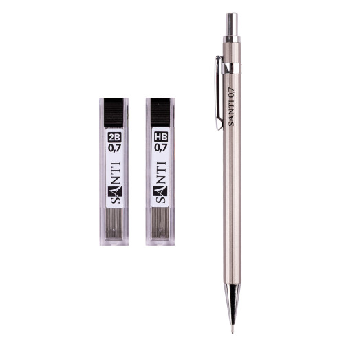 Олівець механічний SANTI 0,7 мм, металевий корпус, з грифелями HB і 2B
