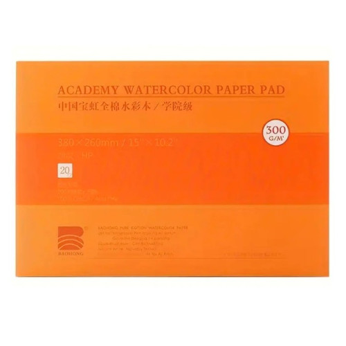 Купити в Україні акварельний блок Baohong Academy 100% бавовна 38×26 см 300 г 20 арк. HP можна на Арткопілці з швидкою доставкою по всій країні!