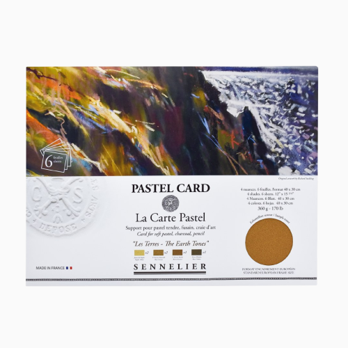 Професійний набір пастельного паперу Sennelier Pastel Card, 6 аркушів 40×30 см — легендарний французький папір з корковим покриттям у теплій палітрі земляних відтінків. Ідеально підходить для сухої та олійної пастелі, вугілля, сангіни, сепії та кольорових олівців.